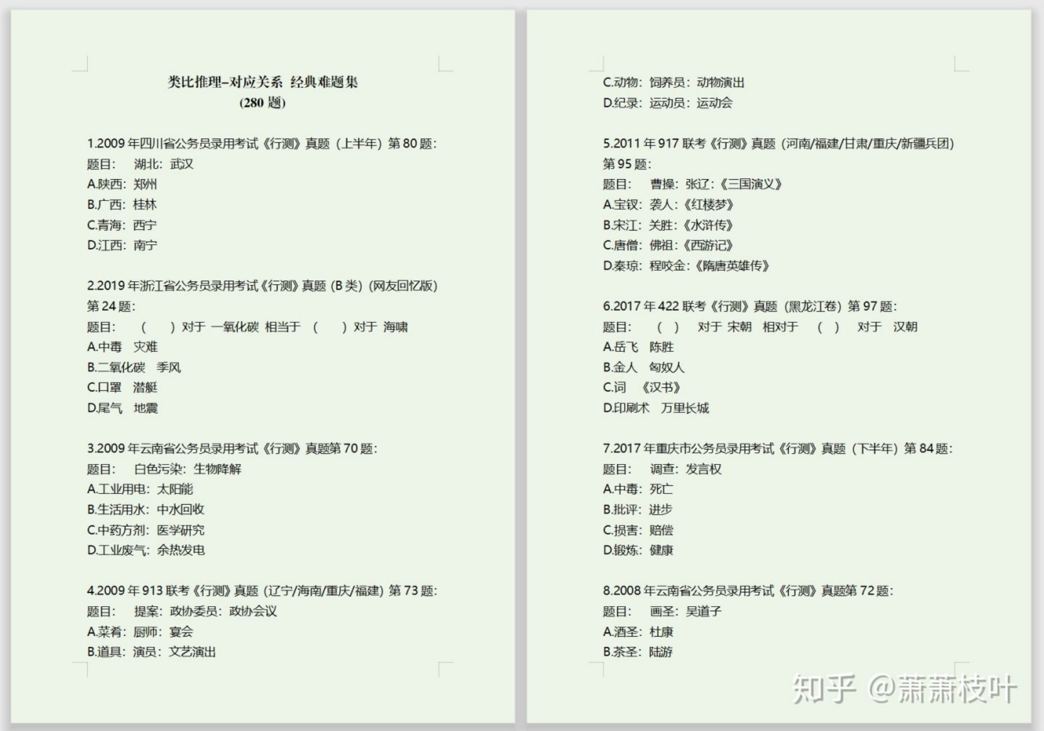 所以我思考很久,决定整理一份《类比推理-对应关系经典难题集合》,帮助大家熟悉一些比较难联想到的对应关系。