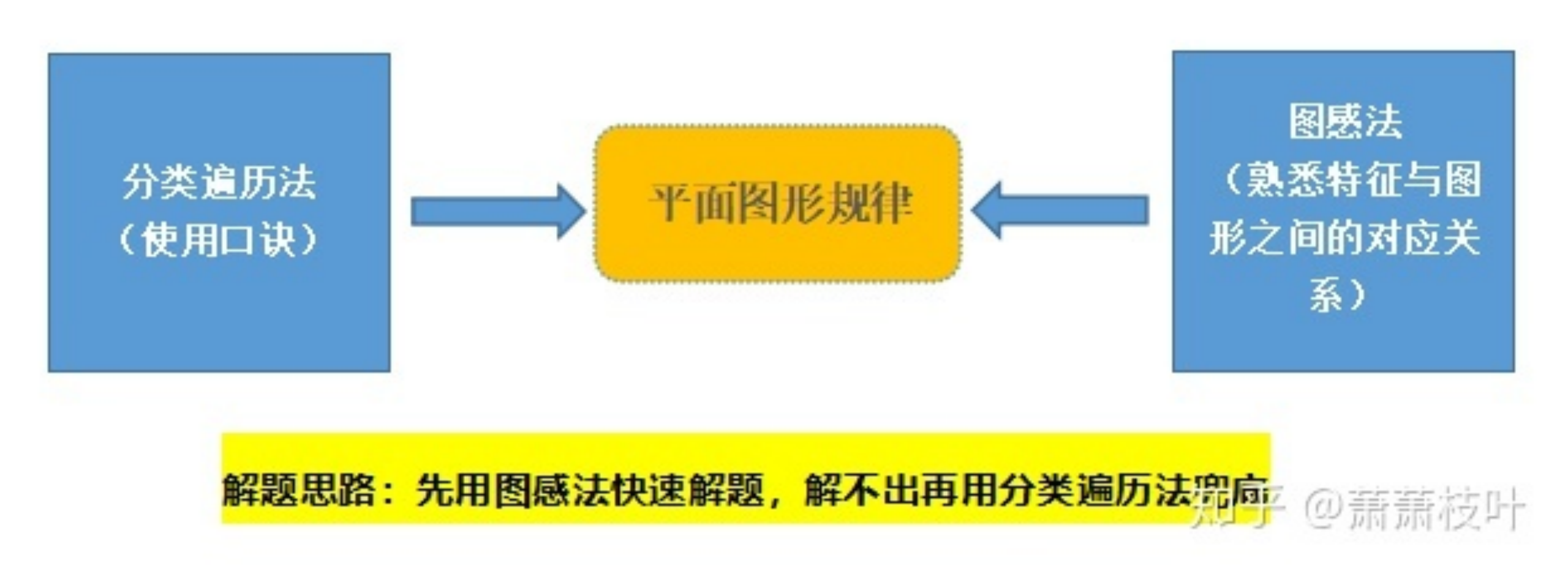 所以很多机构都是从图形的特征出发,去总结其对应的规律,让考生们掌握这些对应关系。 包括知乎上的一些文章也是这样的解题思路。