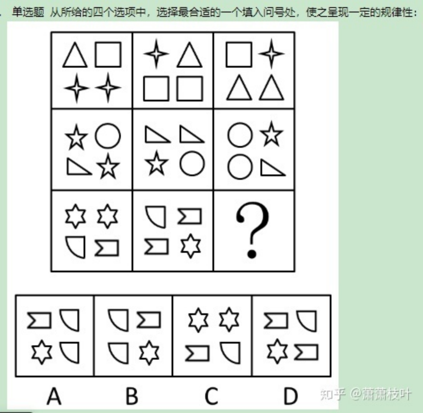 也就是说图形推理,是希望你能够通过观察出题者给的图形特征,从而分析推理出图形之间的规律。