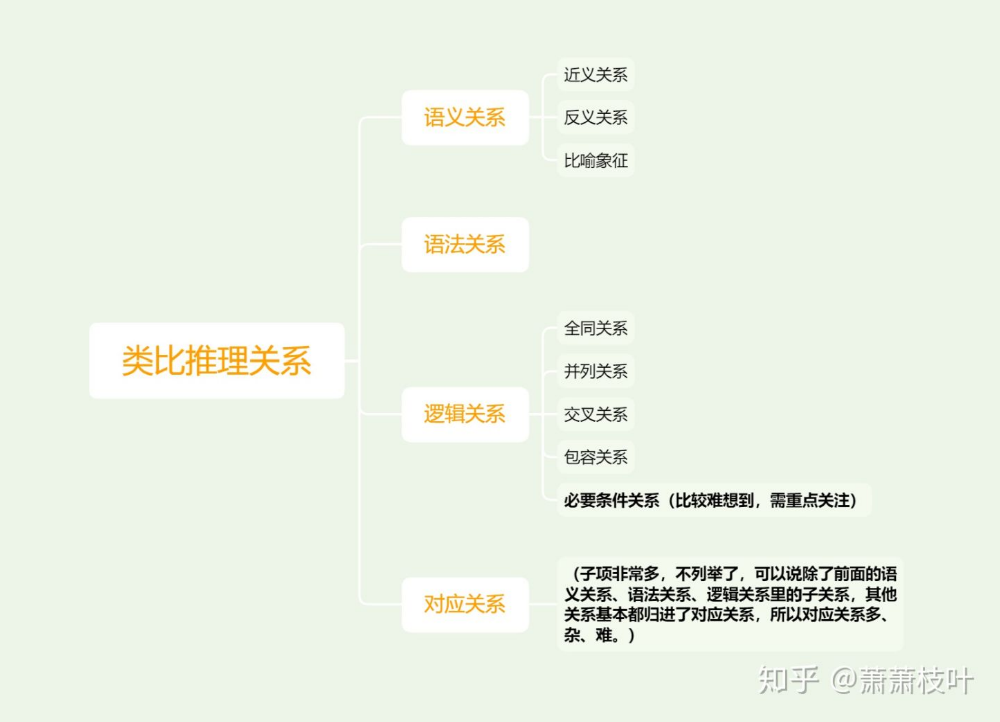 虽然类比推理的关系很多,但是大部分关系都可以一眼看出来,难点就在于「对应关系」比较多样,有时并不能第一眼就联想到正确的关系。
