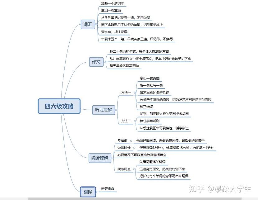 下面奉上我整理的四六级考试心法懒人版,没看完长文的小伙伴们可以看这个思维导图哦!