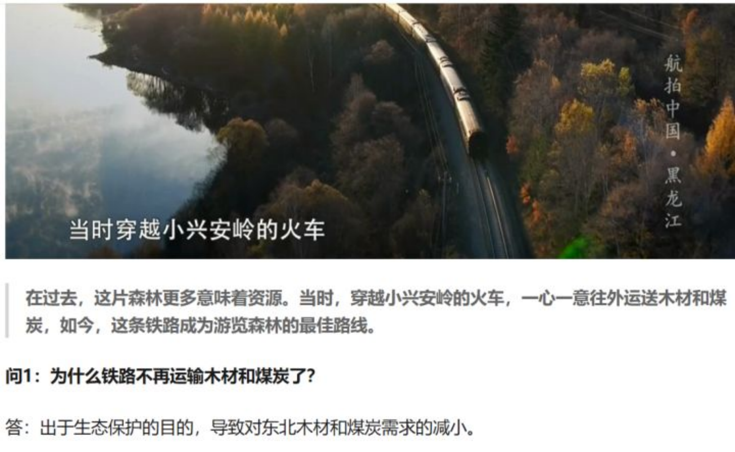这道题目,立足真实情境,6 题体现交通线和地形不同要素的关系,有综合思维的意味;要做对第 7 题,要熟悉东北地区的自然环境和产业特点,体现区域认知;而第 8 题,随着时代的发展,我们越来越看重森林的生态价值,东北森林的采伐越来越少,这个体现了人地协调观。 现实生活中有没有这个事情?当然有