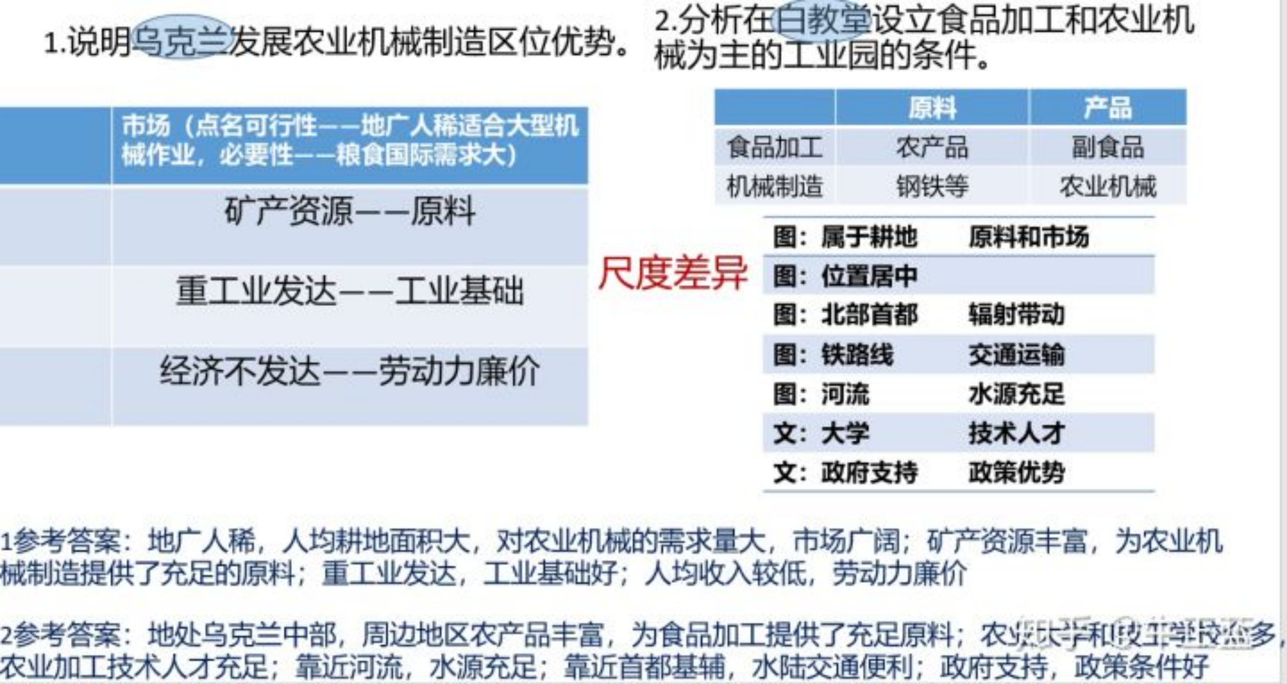 其实,这样设置是考察尺度变化的思维。 第一小题考「乌克兰」,第二小题考「白教堂市」,因为设问对象空间尺度的差异,答案组织完全不同。