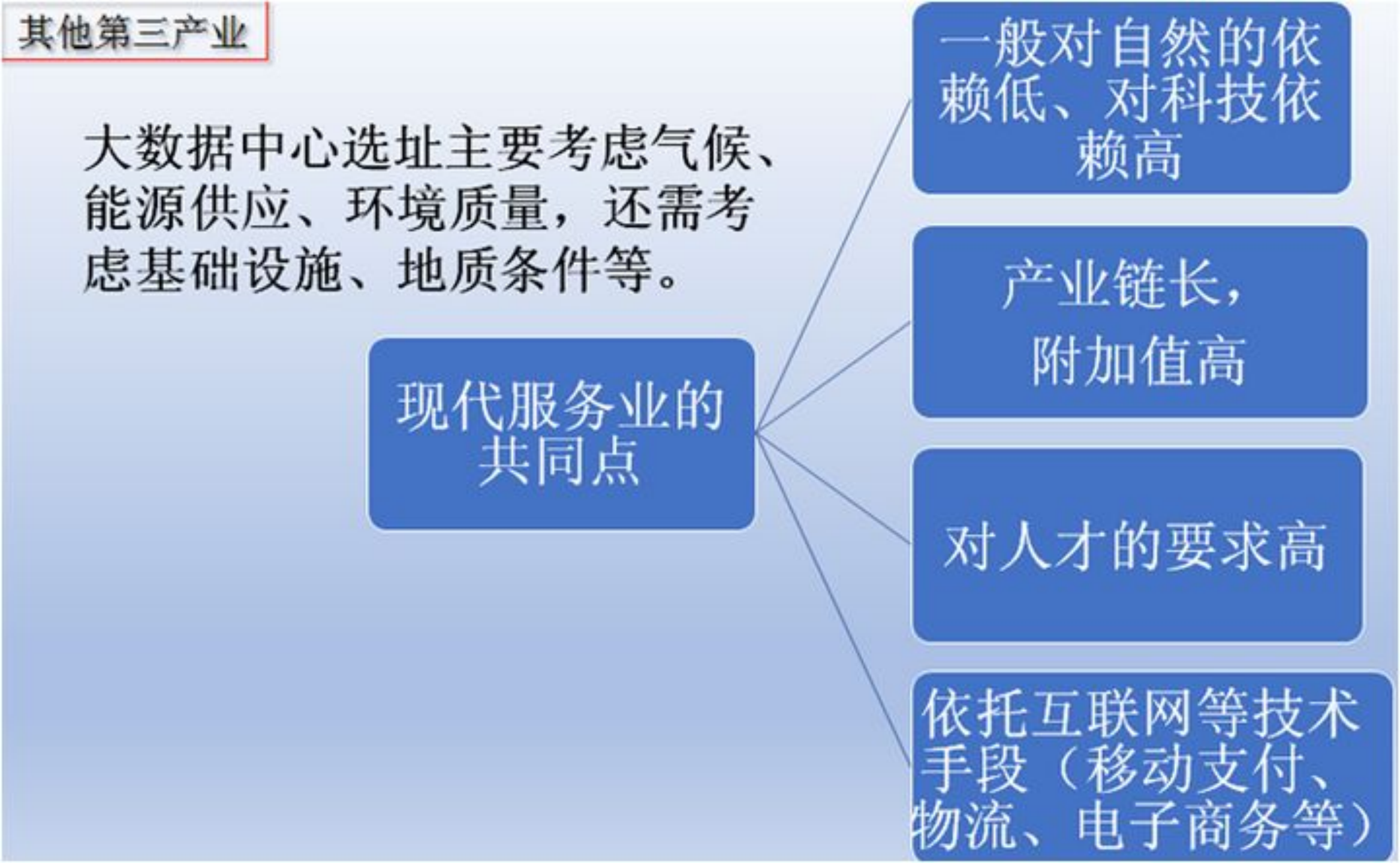 经常出现在农业区位条件和工业区位条件中。 地广人稀的区域一般可以写「后土地资源充足」。