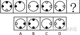 这道题按套路来的话,都觉得会是考察黑点白点的运算规律,但是如果放弃套路,从题目本身出发,很容易看出来,主规律是对称规律,对称轴在旋转。