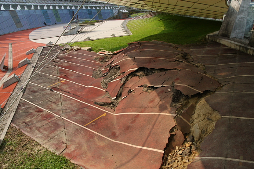 远处的实验楼在晃动中解体,墙体和地板纷纷支离破碎,而前方的主教学楼的走道也晃得摇摇欲坠……