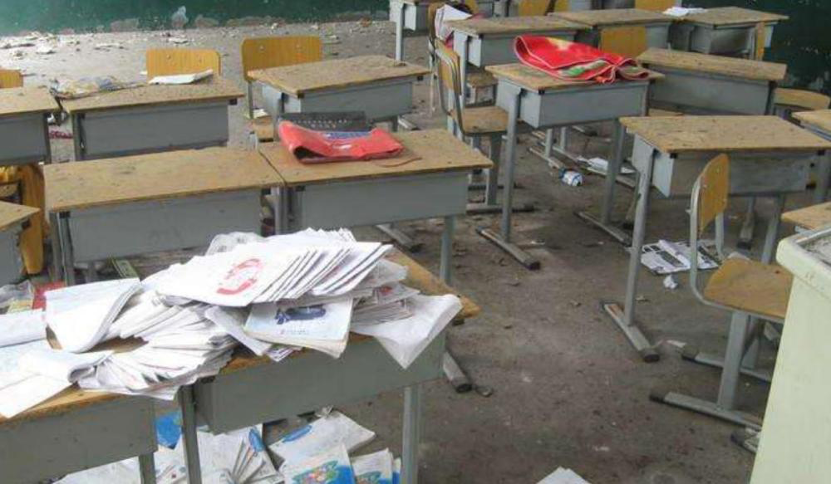 雷楚年一头扎进教室,才发现里面连地板都是歪斜的,满屋子的灰迷住了他的双眼,天花板上还有碎砖屑时不时倾洒下来……