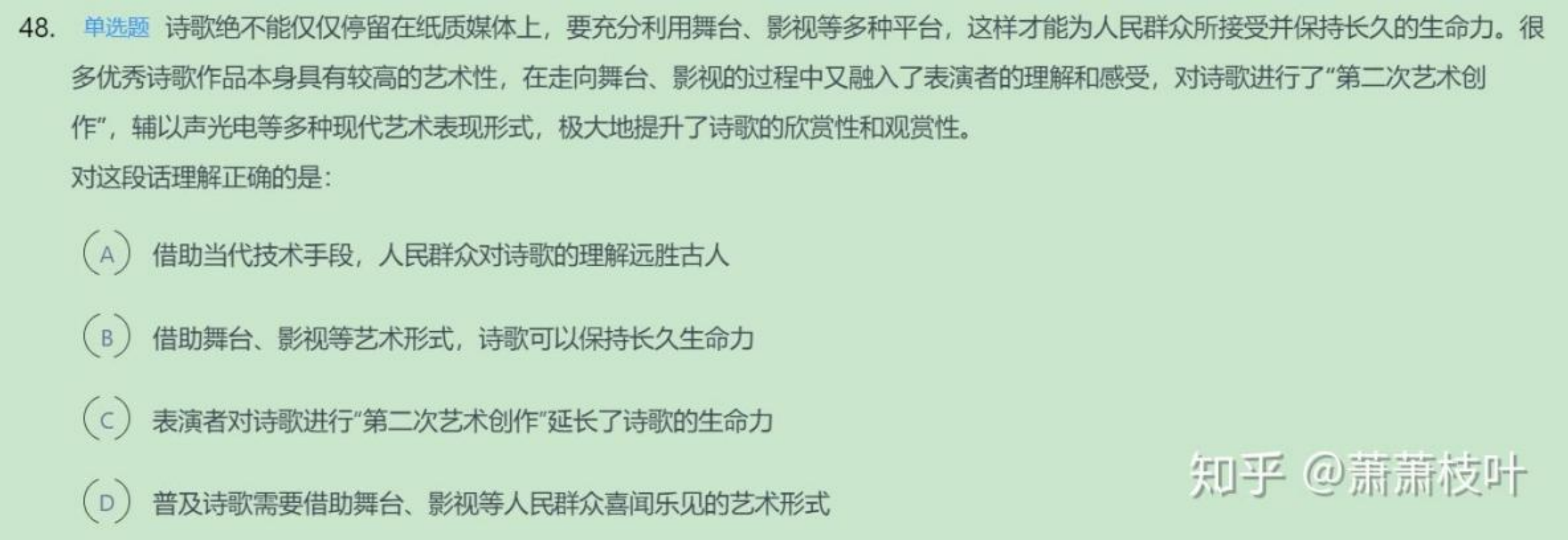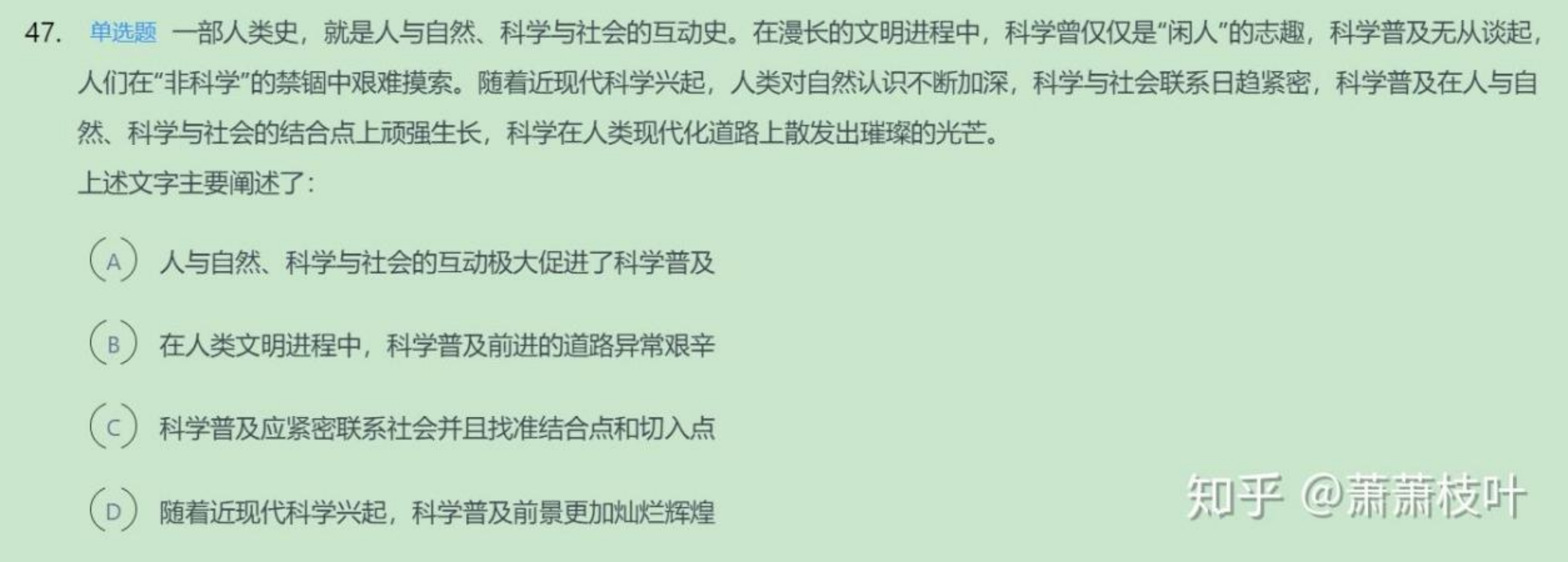 例题: 4-2019 年国家公务员录用考试《行测》真题(地市级网友回忆版)第 47 题:
