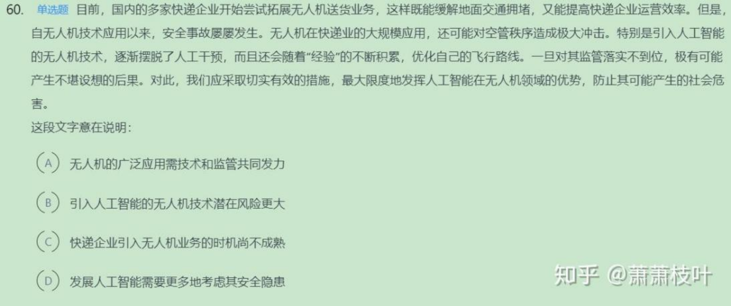 注:本题中,文段前文的内容都是在为最后一句话做铺垫,最后一句话是主旨句。