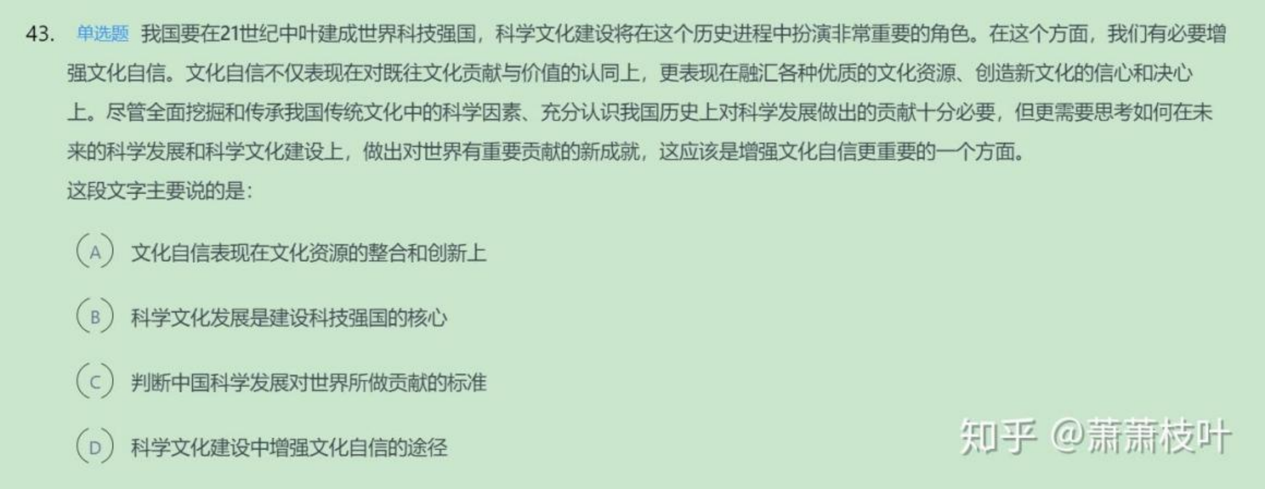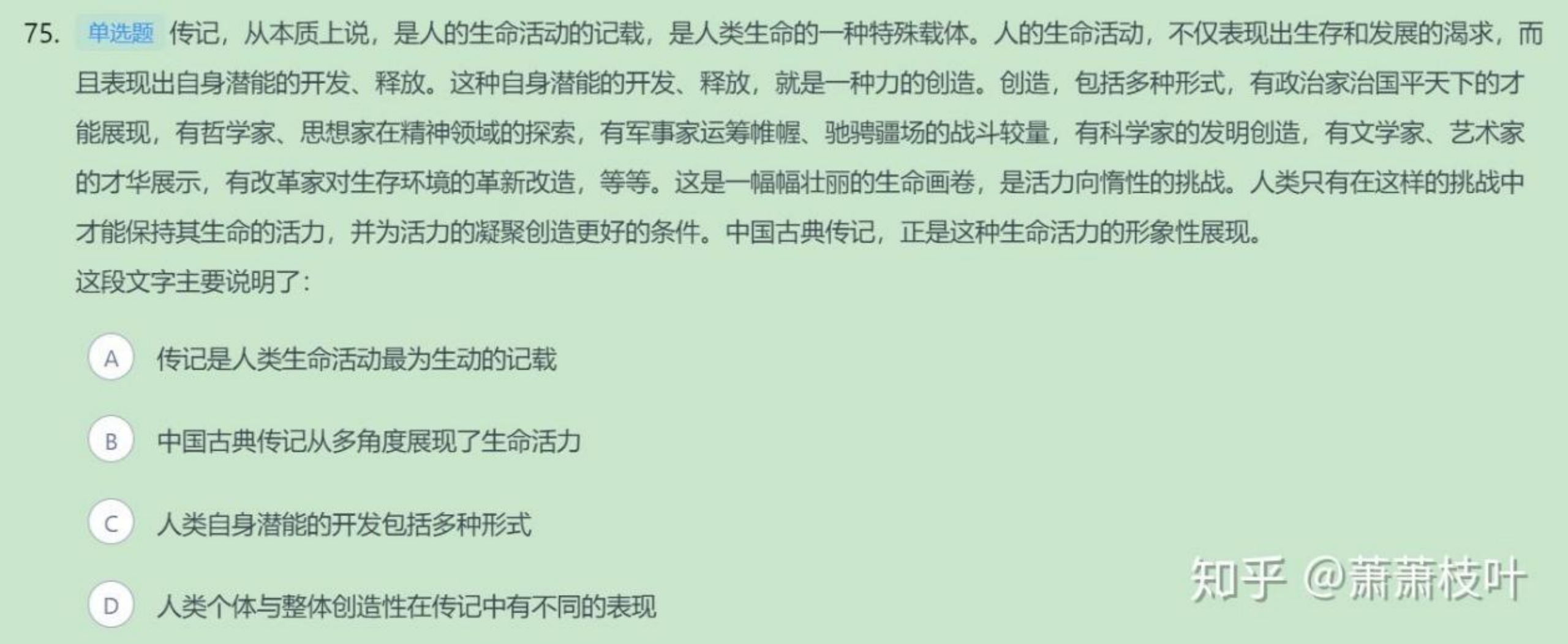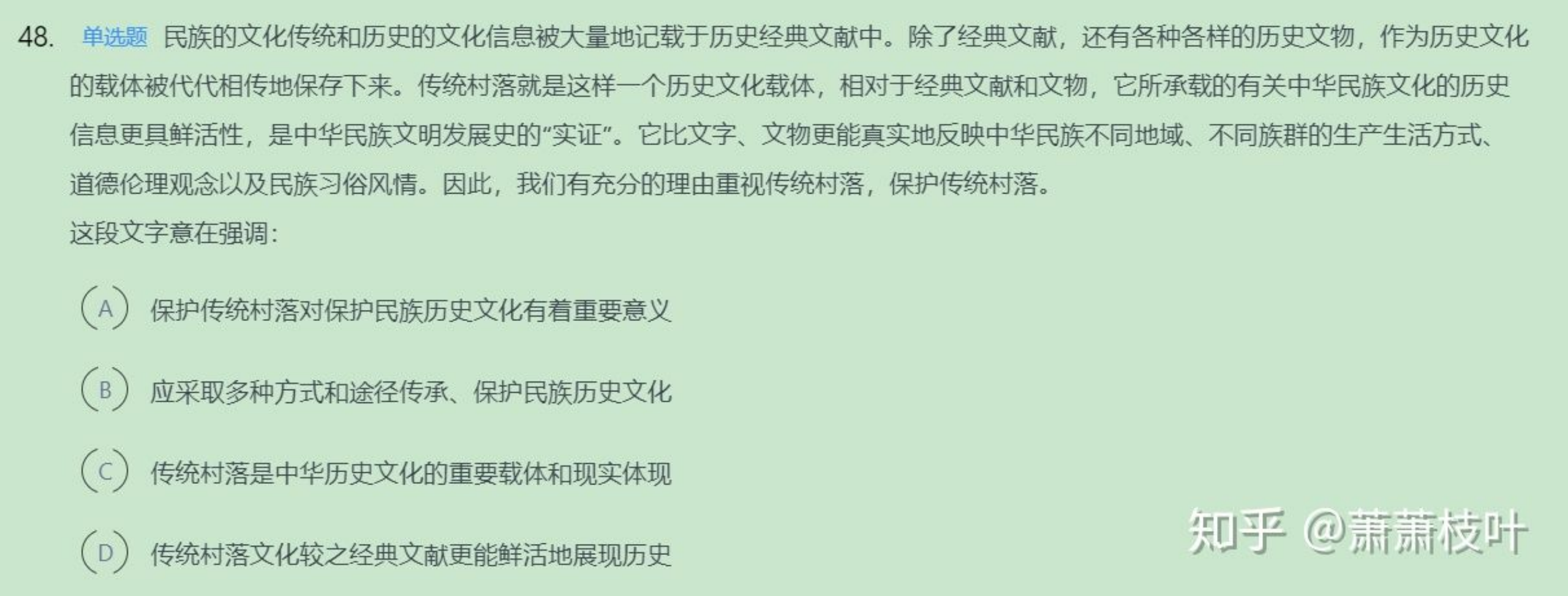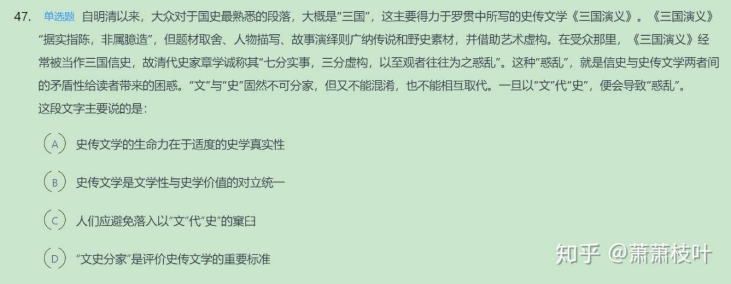 这道题难就难在对文段主旨的把握,其实通读文段,你就会发现文段主旨是中性色彩的,不褒不贬。