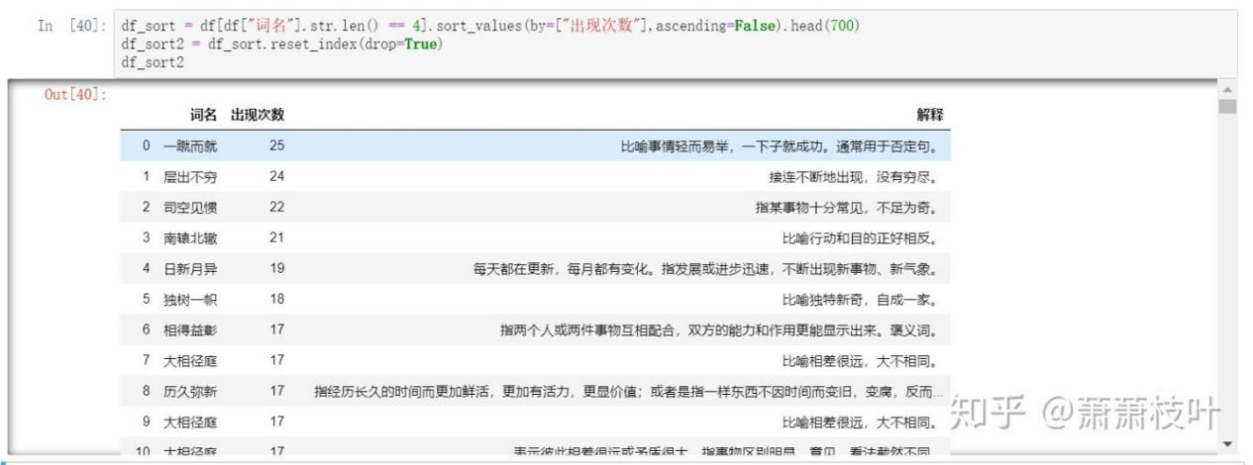 在这里,就要开始放大招了。 我利用爬虫抓取了目前所有能收集到的行测试卷,把里面的逻辑填空题筛选出来,将选项中的成语在真题中出现的频次用数据分析的工具做了统计。 (答主理科出身,这点操作还是很 easy 嘀~)