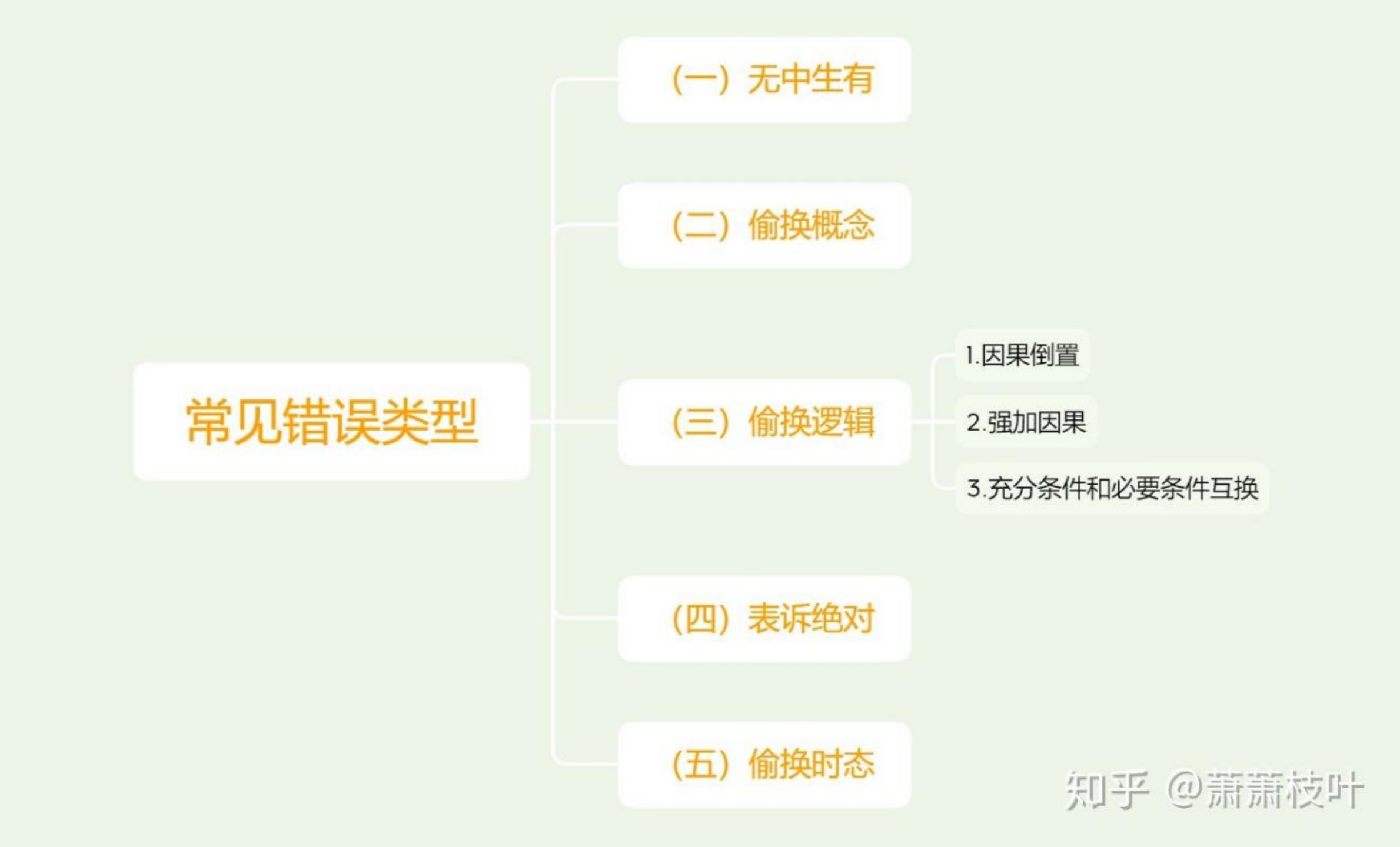 前文描述的常见错误类型,大家过一遍即可,不必做专门记忆。 因为最后在考场上做题的时候,其实就是「找不同」,你来不及区分它是什么错误类型的,也并不需要区分就能做对题。