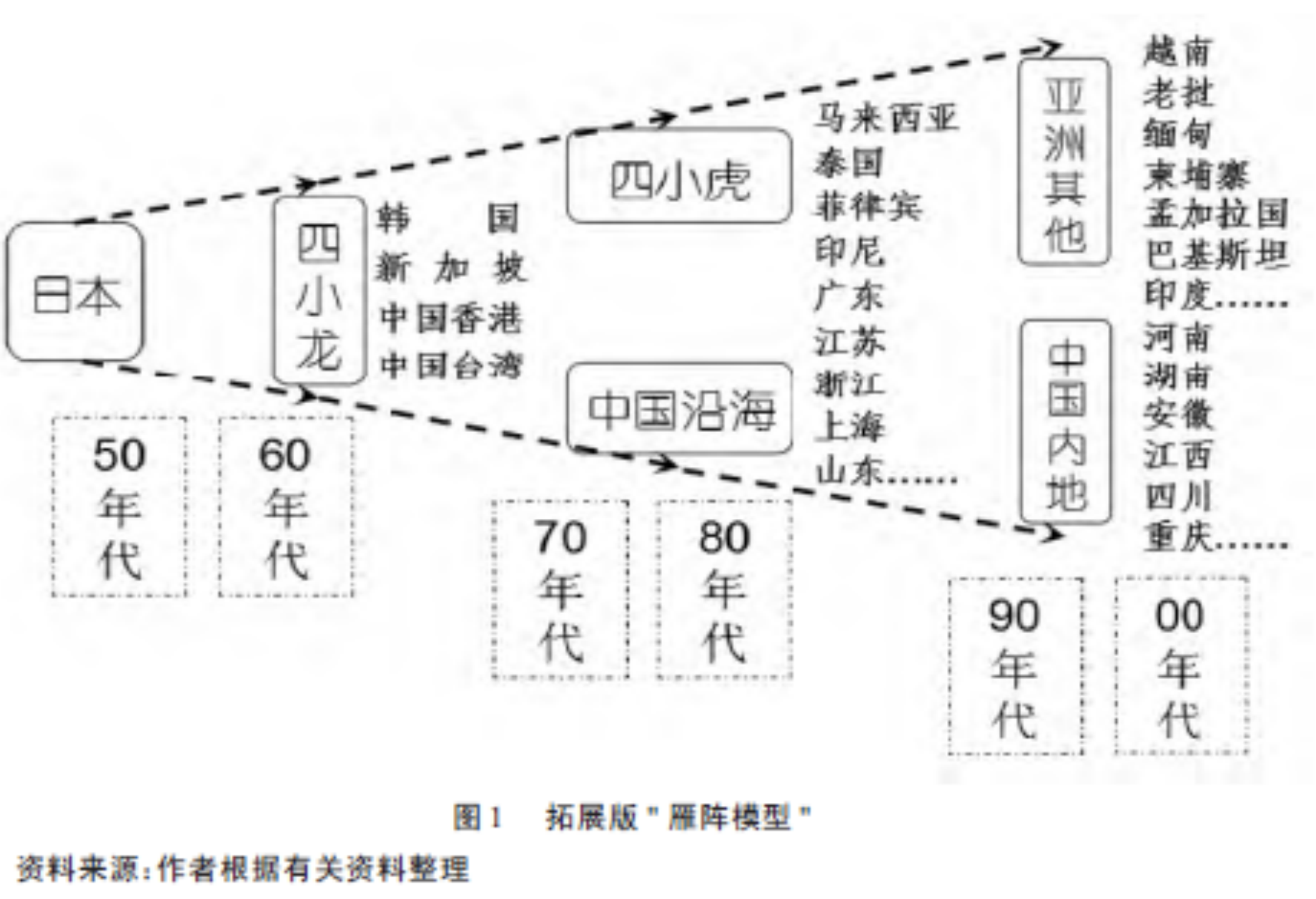 上世纪 70-90 年代,亚洲不少国家都经历了一段经济快速增长的时期,被称为「亚洲奇迹」。 当时的制造业转移的路径是:美国➱日本➱四小龙➱四小虎➱中国大陆。