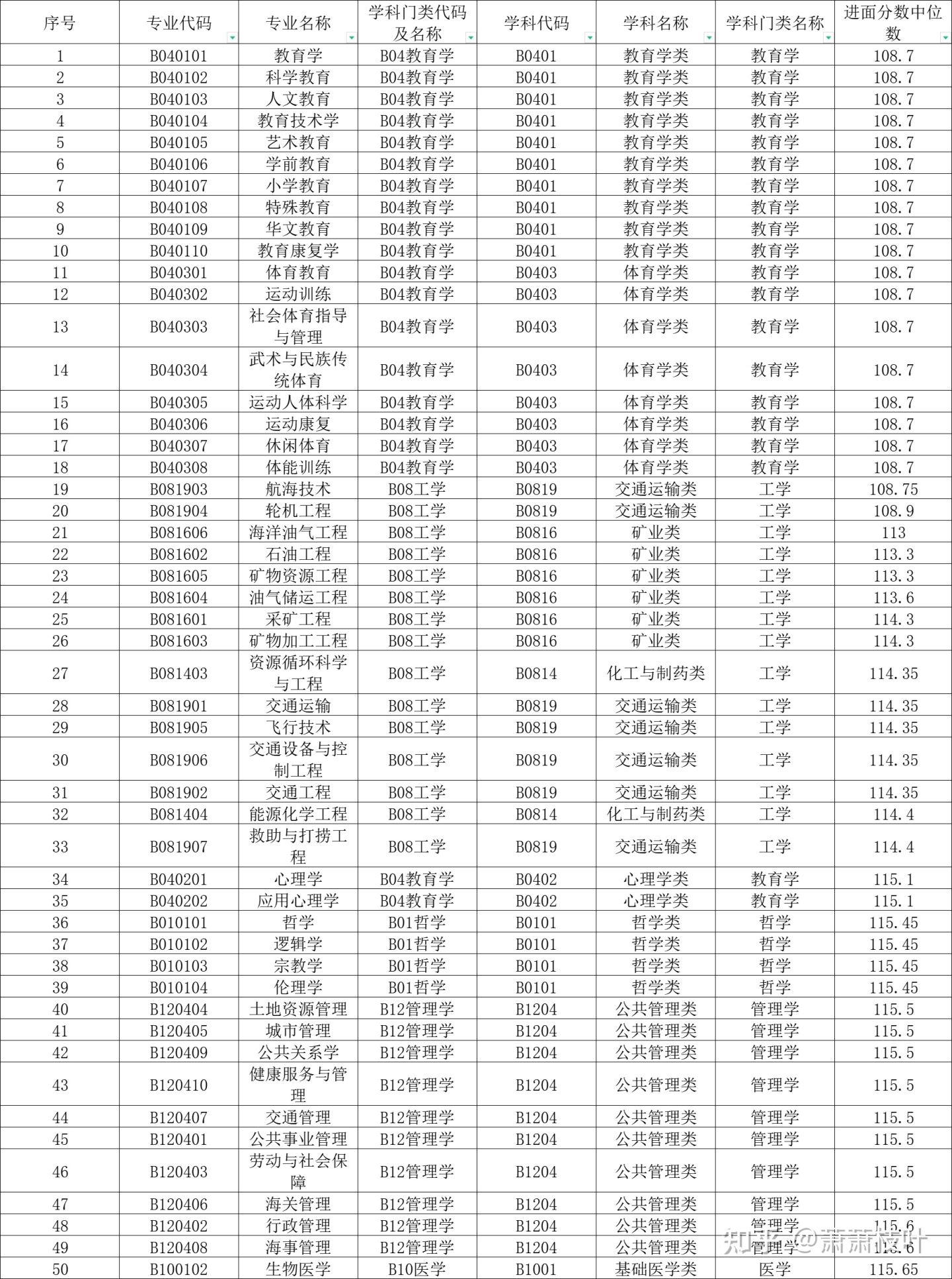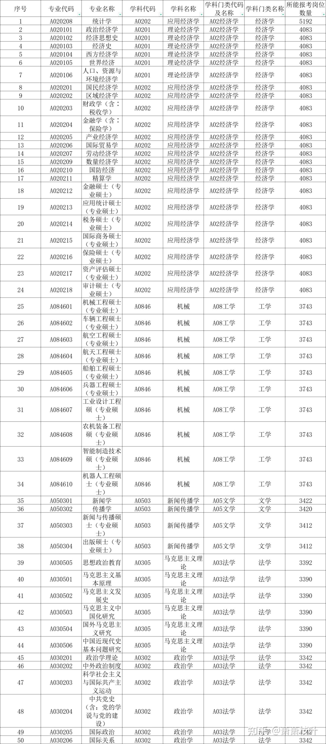当然,还有其他专业也是有优势的(比如中国语言文学类、公安学类等),在这里因为篇幅原因,只选出前 50。