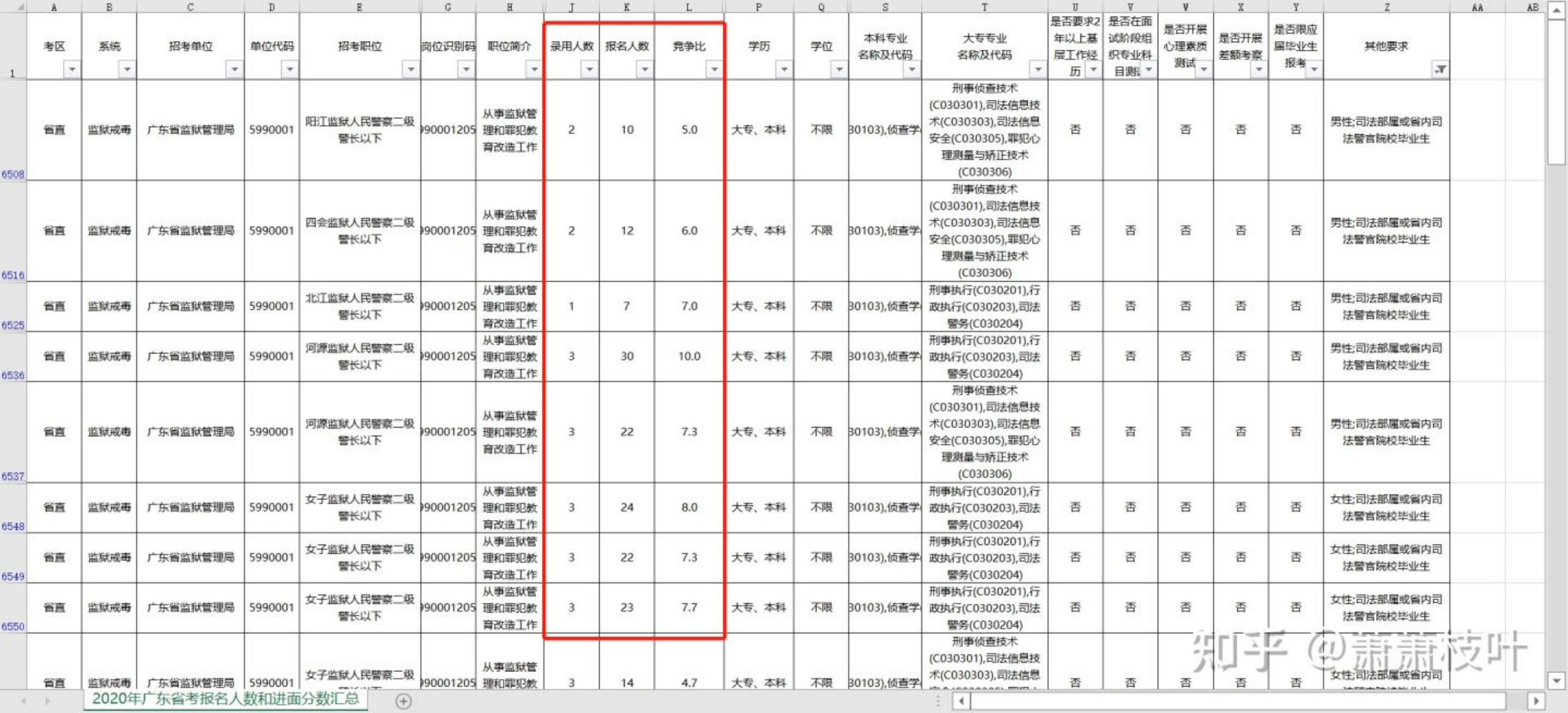 很多岗位的设置,都是以学科门类招考,不会具体到专业名称。 比如下面的这个岗位就只限定了法学类,那么法学类下的所有专业都可以报考,所以报名人数一般会很多。