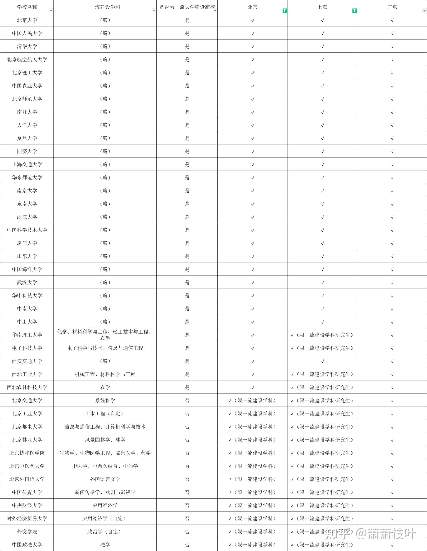 发现能够同时进入北京、上海、广东三地选调学校范围的高校如下: