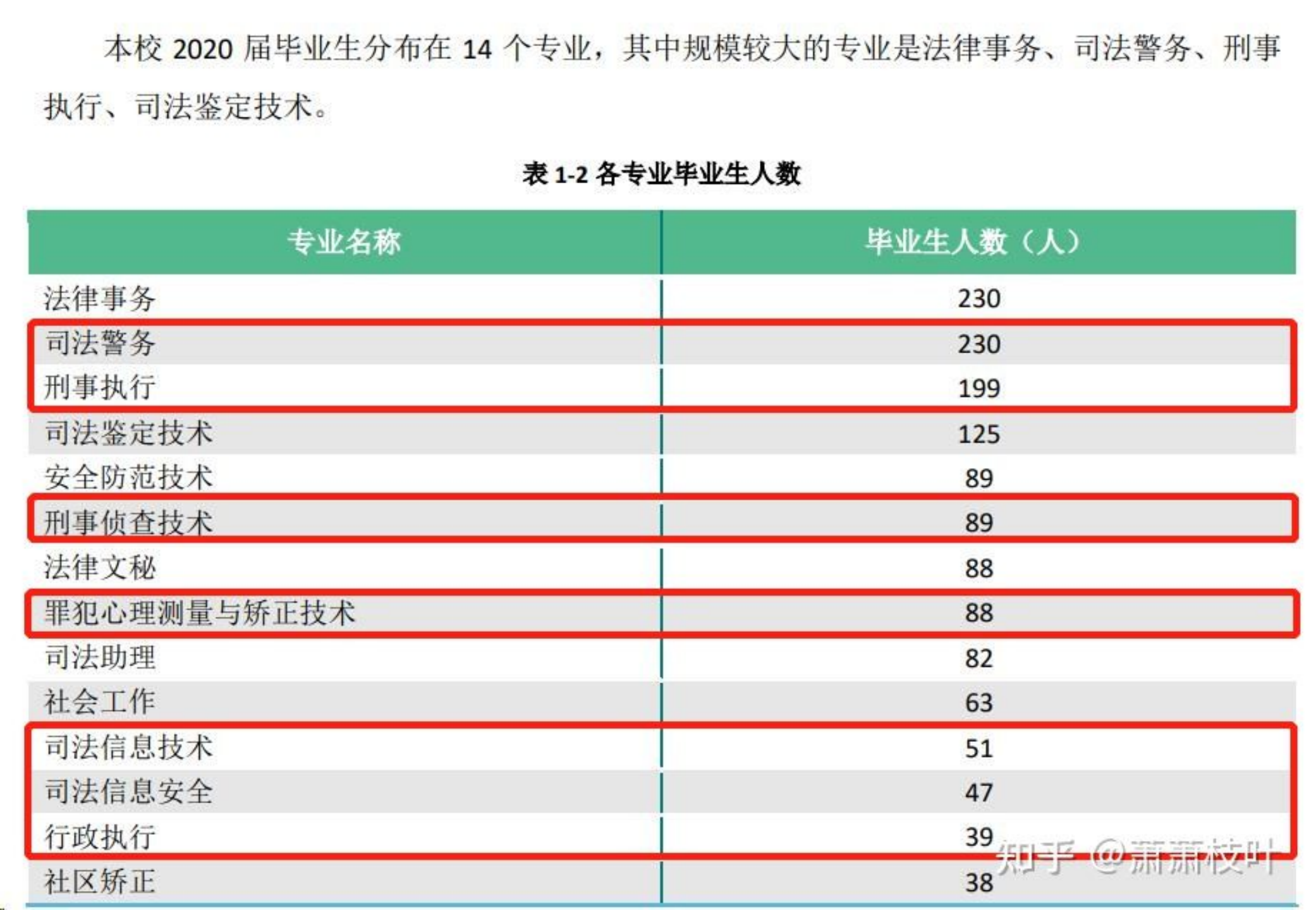 但是,这种途径的入警率在各省情况不一样。 很少有人会去统计,但作为研究型 UP 主,我还是扒到了《广东司法警官职业学院 2020 年毕业生就业质量年度报告》,然后我发现,该校司法行政警察类专业(如下图红框专业)的毕业生人数为 743 人[广东司法警官职业学院 2020 年毕业生就业质量年度报告],而 2020 年广东省考中面向广东司法警官职业学院司法行政警察类专业招录的岗位计划数为 109 人[2020 年广东省考],所以整体的入警率应该为 14.7% 左右。
